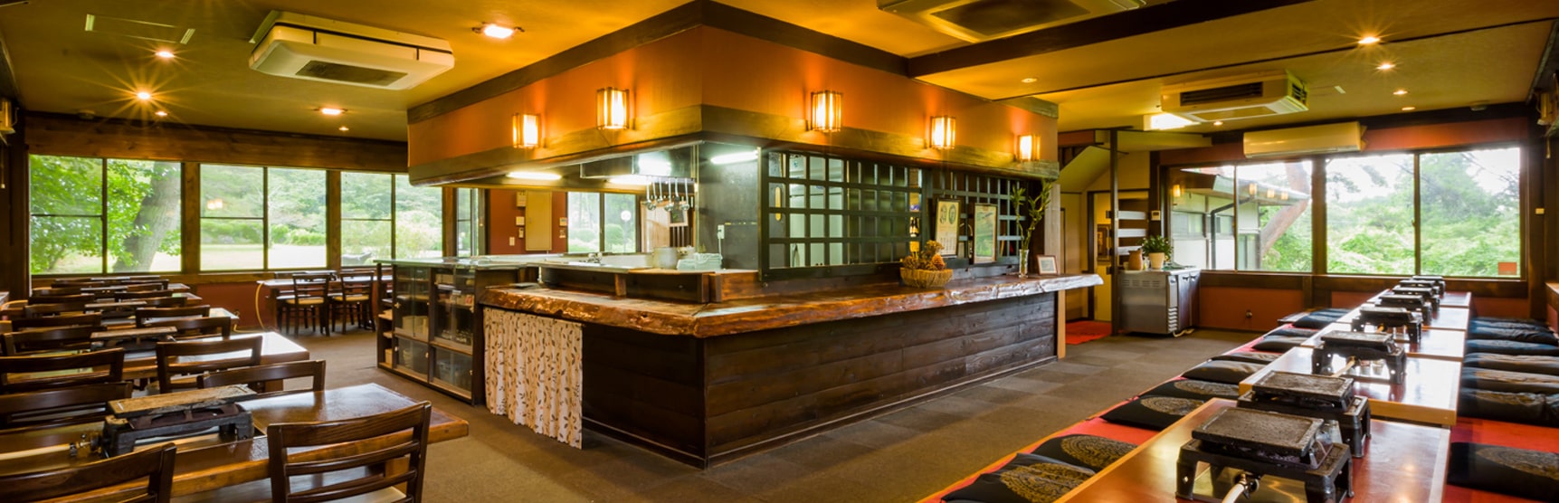 富士山溶岩のプレートで焼くステーキがメインメニューです。肉本来の良さを味わってもらおうとタレは使わず特選醤油と洋ガラシのみで食べるのが当店のスタイルです。